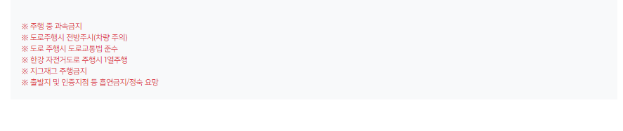 - 참가기념품: 라이딩 후, 참가기념품과 기념메달을 받을 수 있어요.
