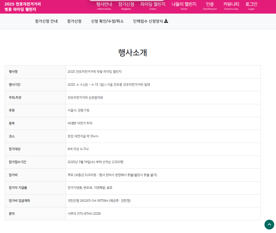 - 행사명: 2025 천호자전거거리 벚꽃 라이딩 챌린지
