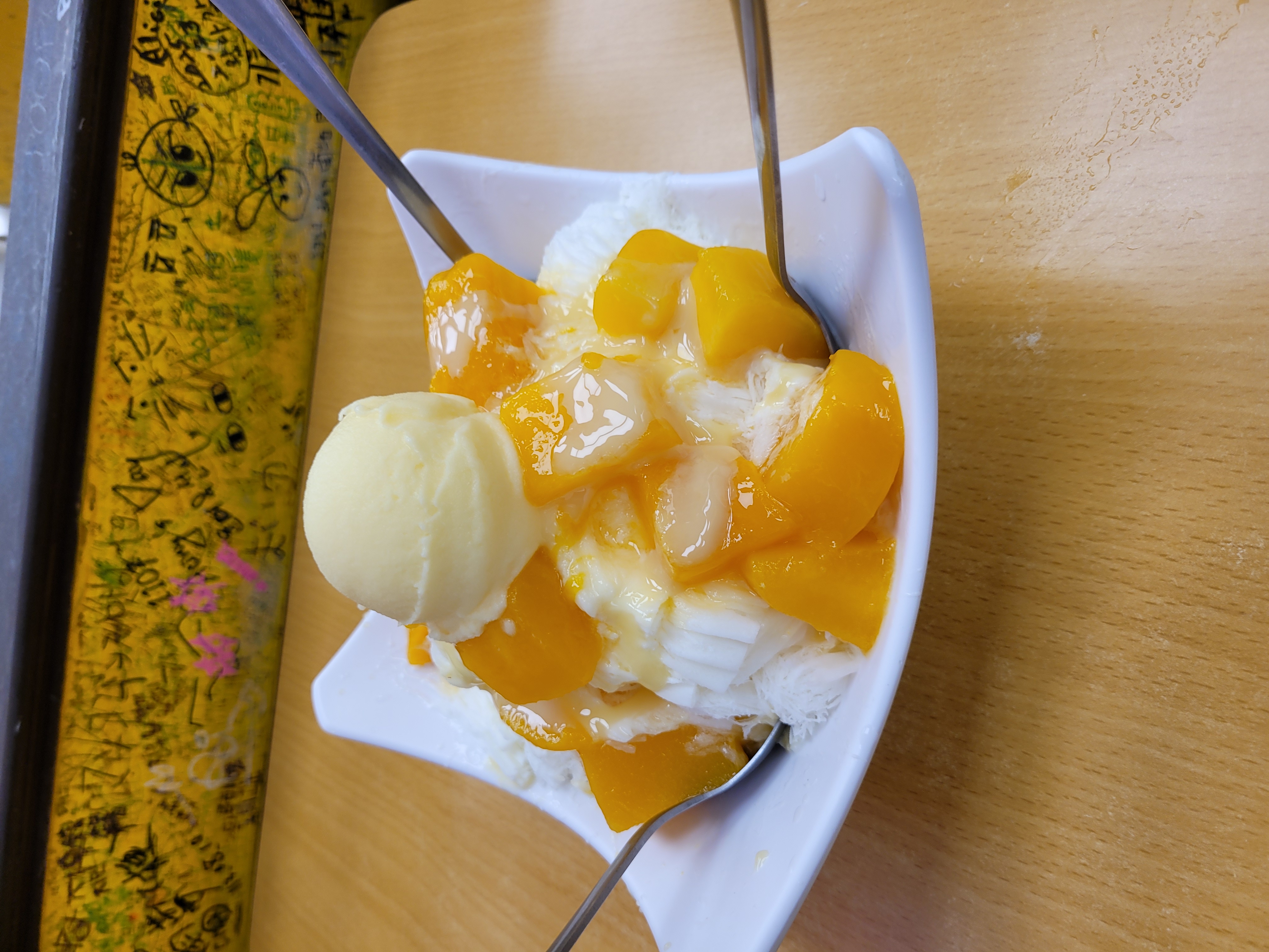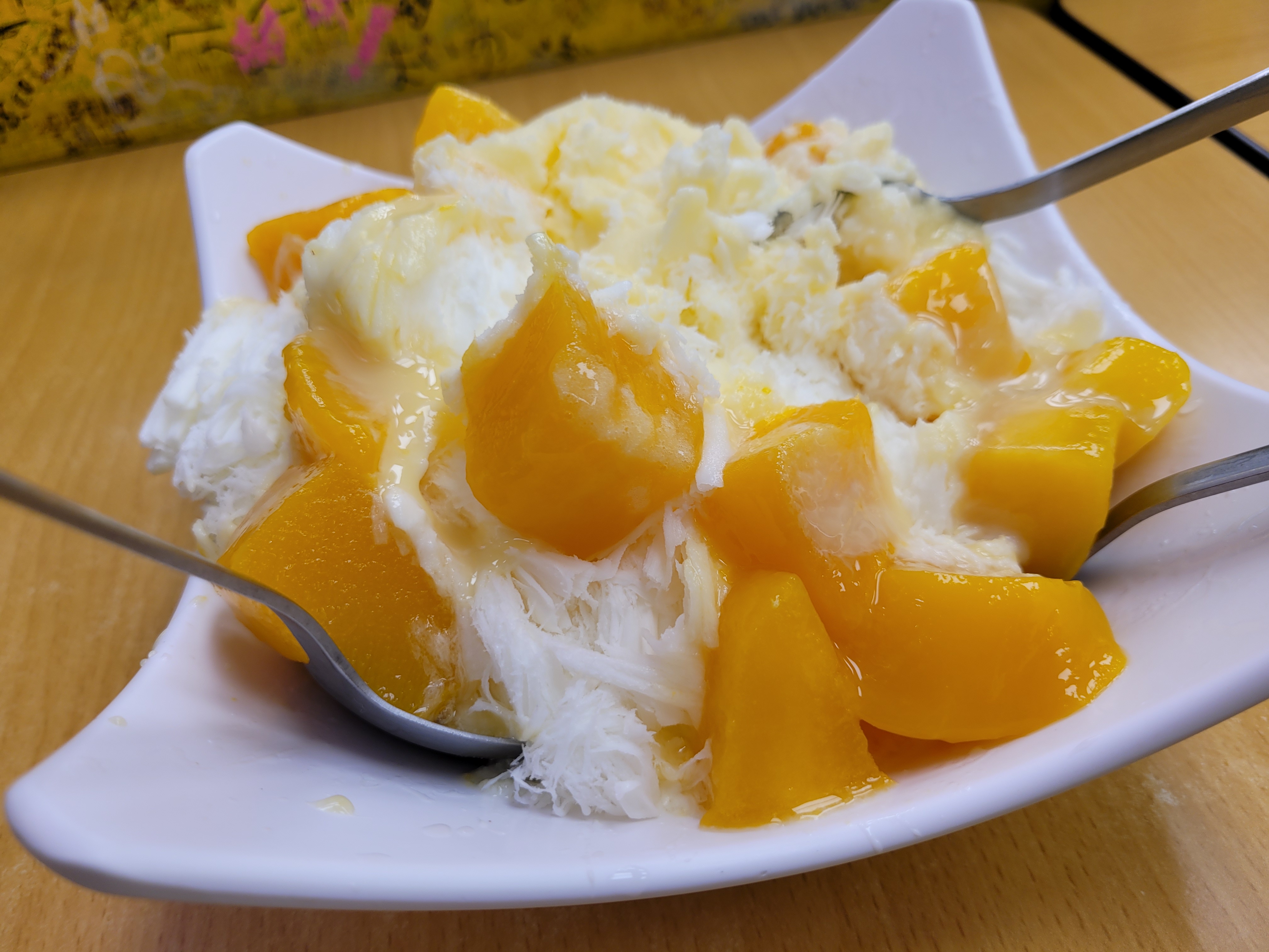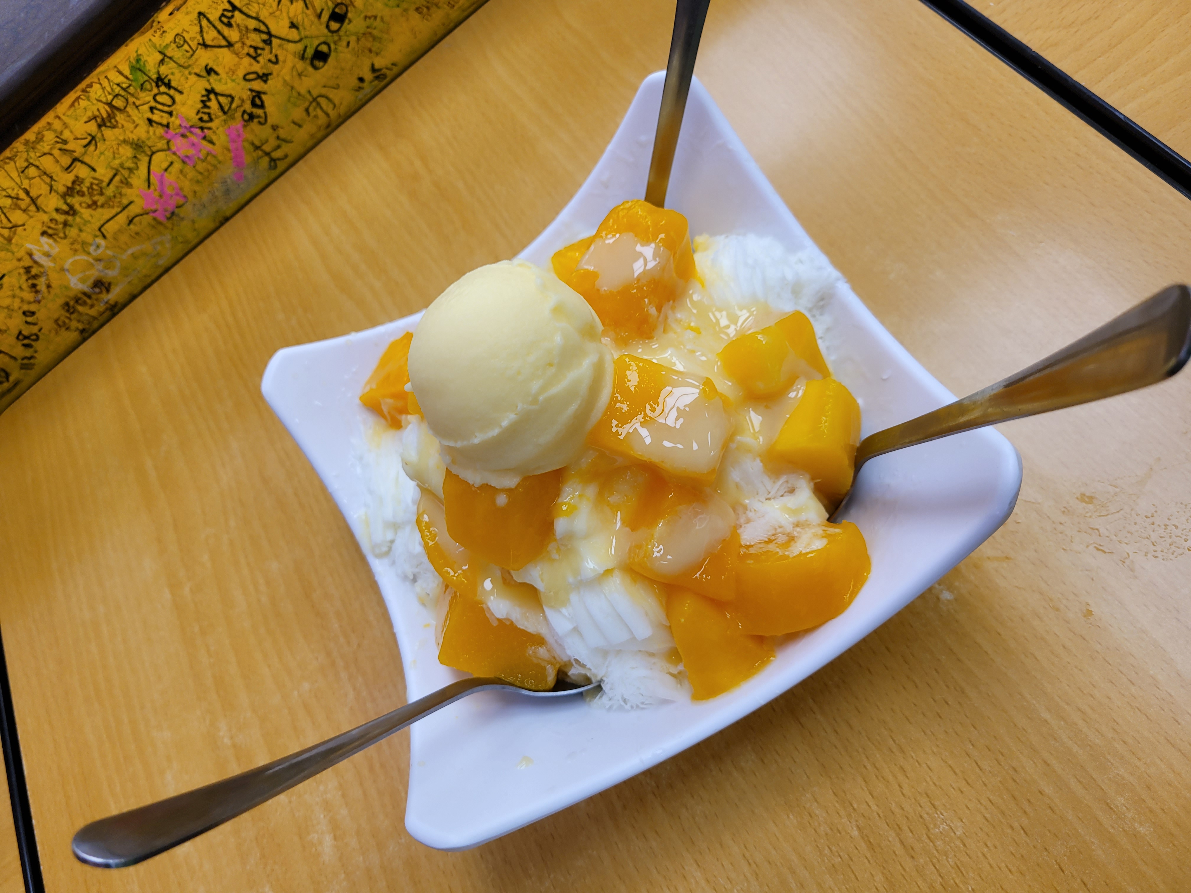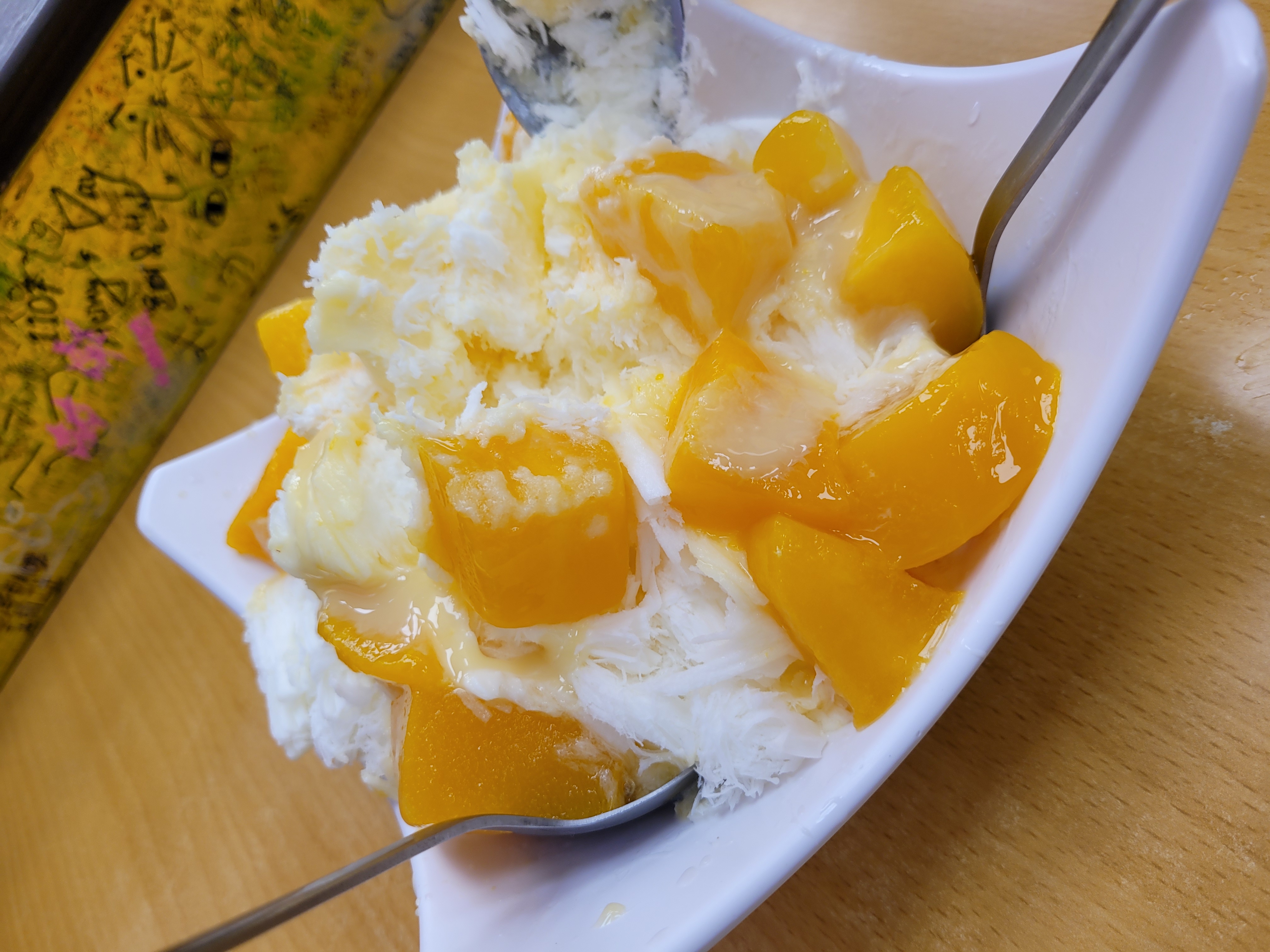 제가 고른 메뉴는 망고 눈꽃빙수(芒果雪花冰) – 가격은 240元이었고, 사이즈도 생각보다 큼직해서 두 명이 나눠 먹기에도 딱 좋아요.