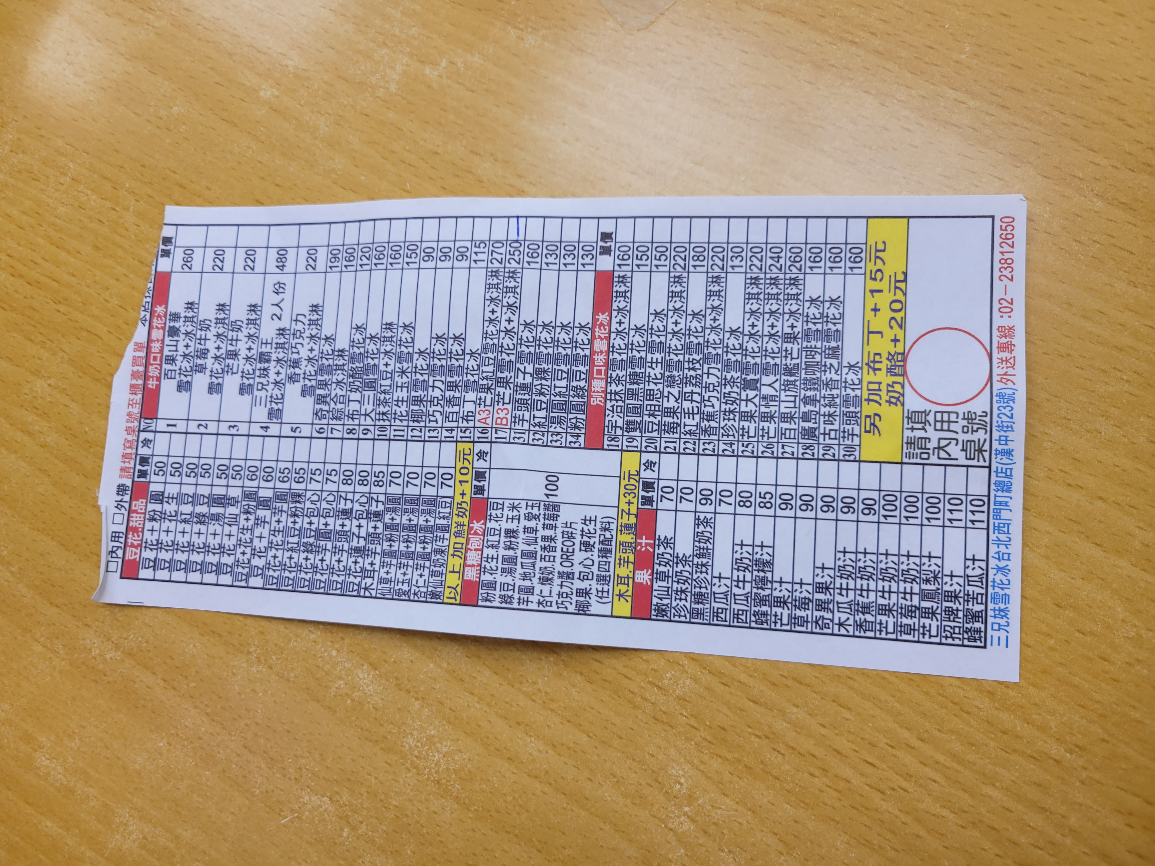 | 6 | 三兄妹雪花冰(2人份) | 삼형제 눈꽃빙수 (2인용 소사이즈) | 230元 |