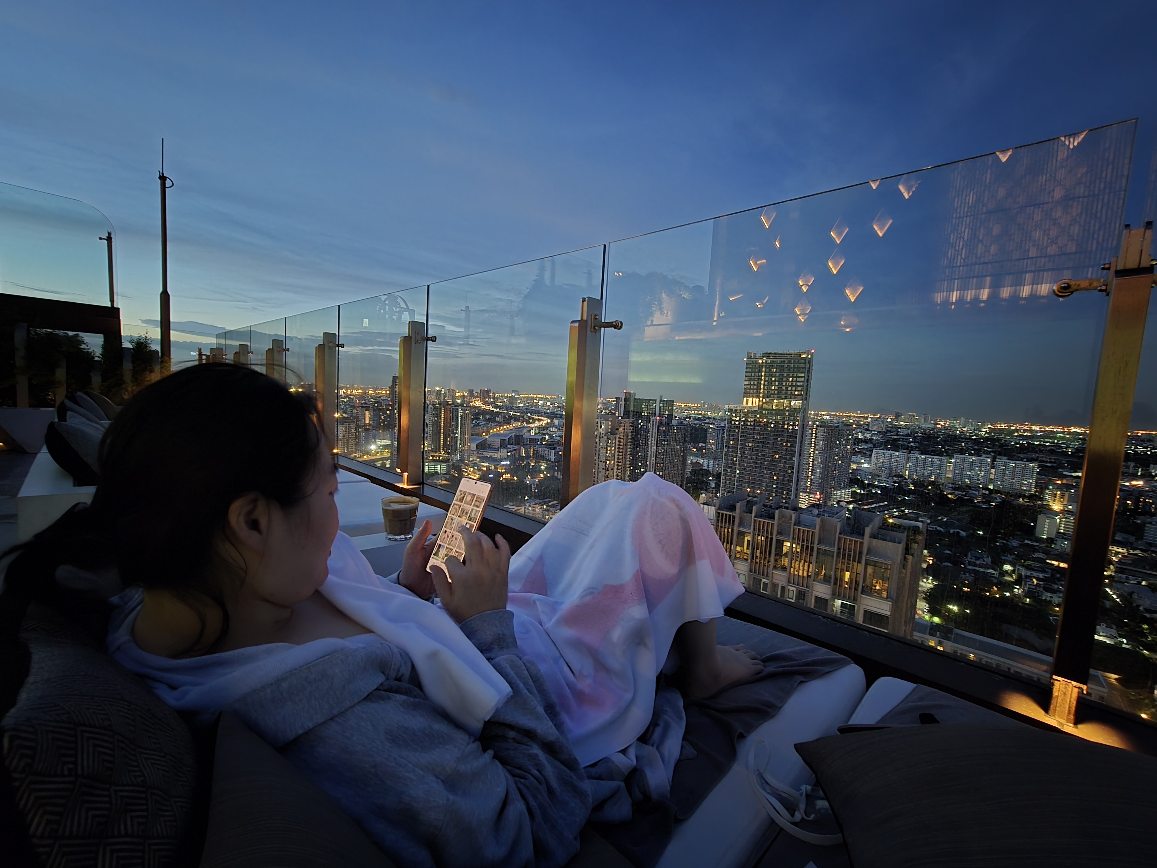 - 분위기: 한적하고 여유로운 분위기! 썬베드에 누워서 방콕 시내를 내려다보고 있으면 여기가 천국인가 싶어요. 멍 때리기 최고! 🧘♀️
