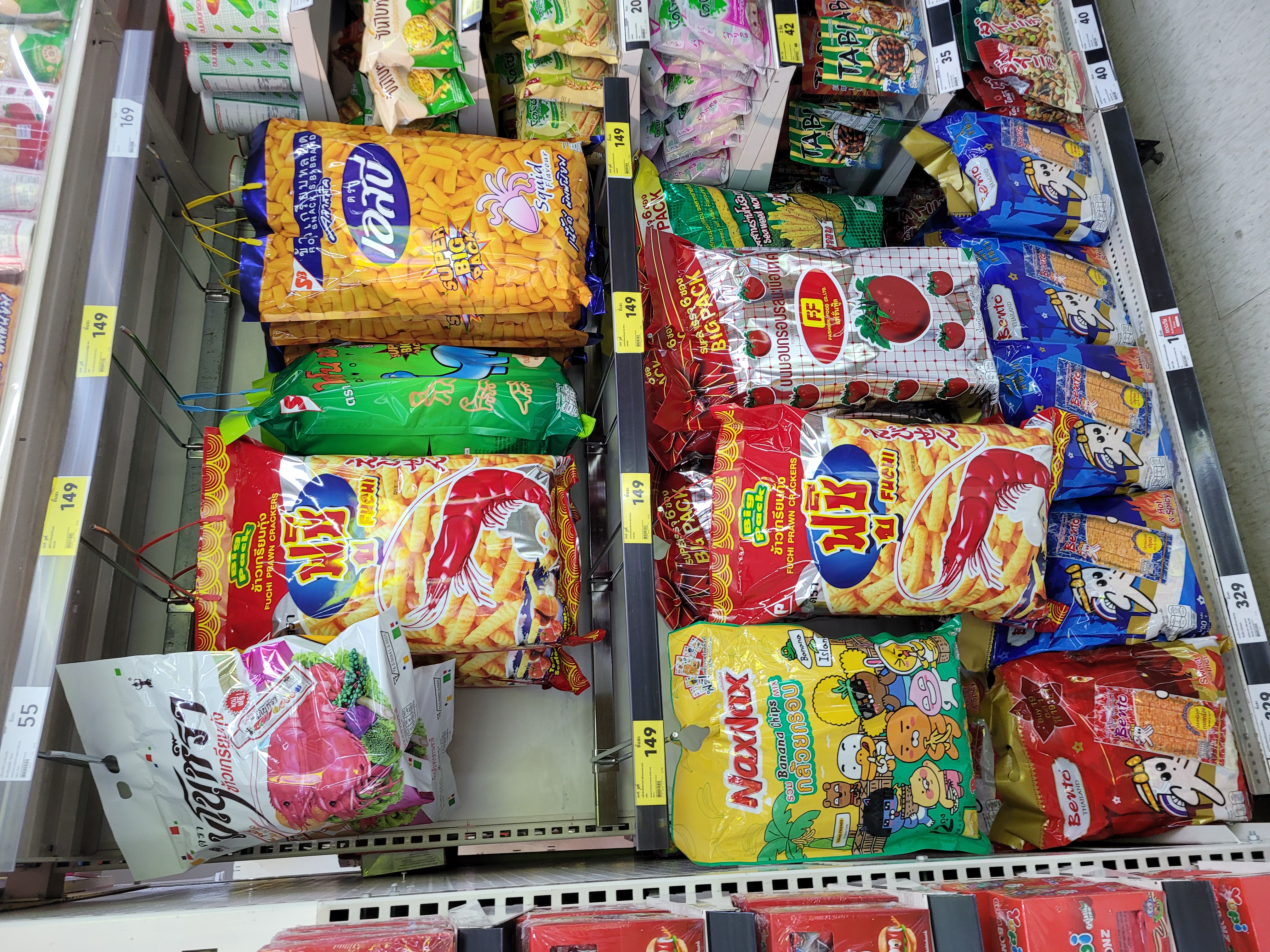 - 각종 태국 과자 & 라면: 봉지 과자들도 한국이랑 다른 독특한 맛들이 많아서 좋아요. 태국 라면도 종류별로 사서 맛보는 재미가 있답니다! 특히 회사에 돌릴 과자로는 개별 포장된 작은 사이즈의 과자들이 인기가 많아요. 저도 여러 종류 섞어서 구매했답니다!