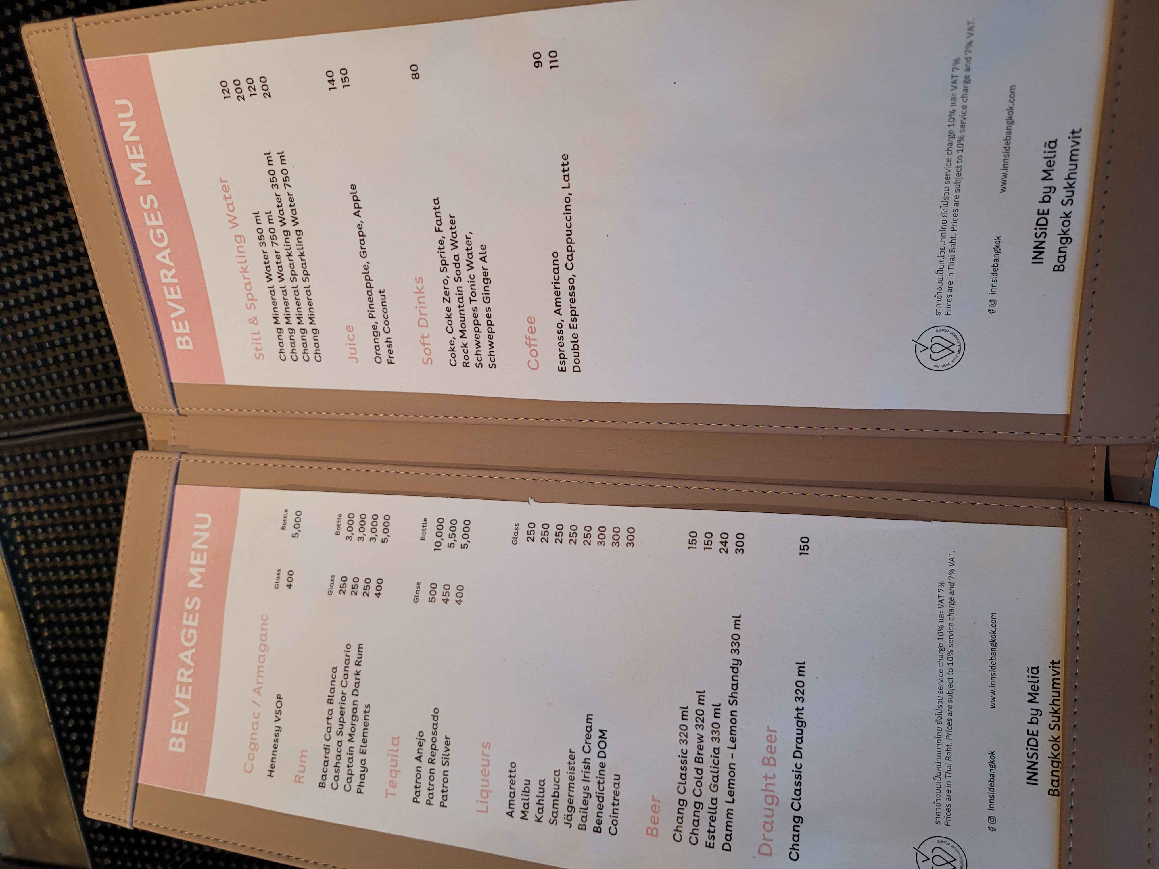 방콕 인사이드바이멜리아호텔 루프탑 수영장 바 메뉴판 가격 공유