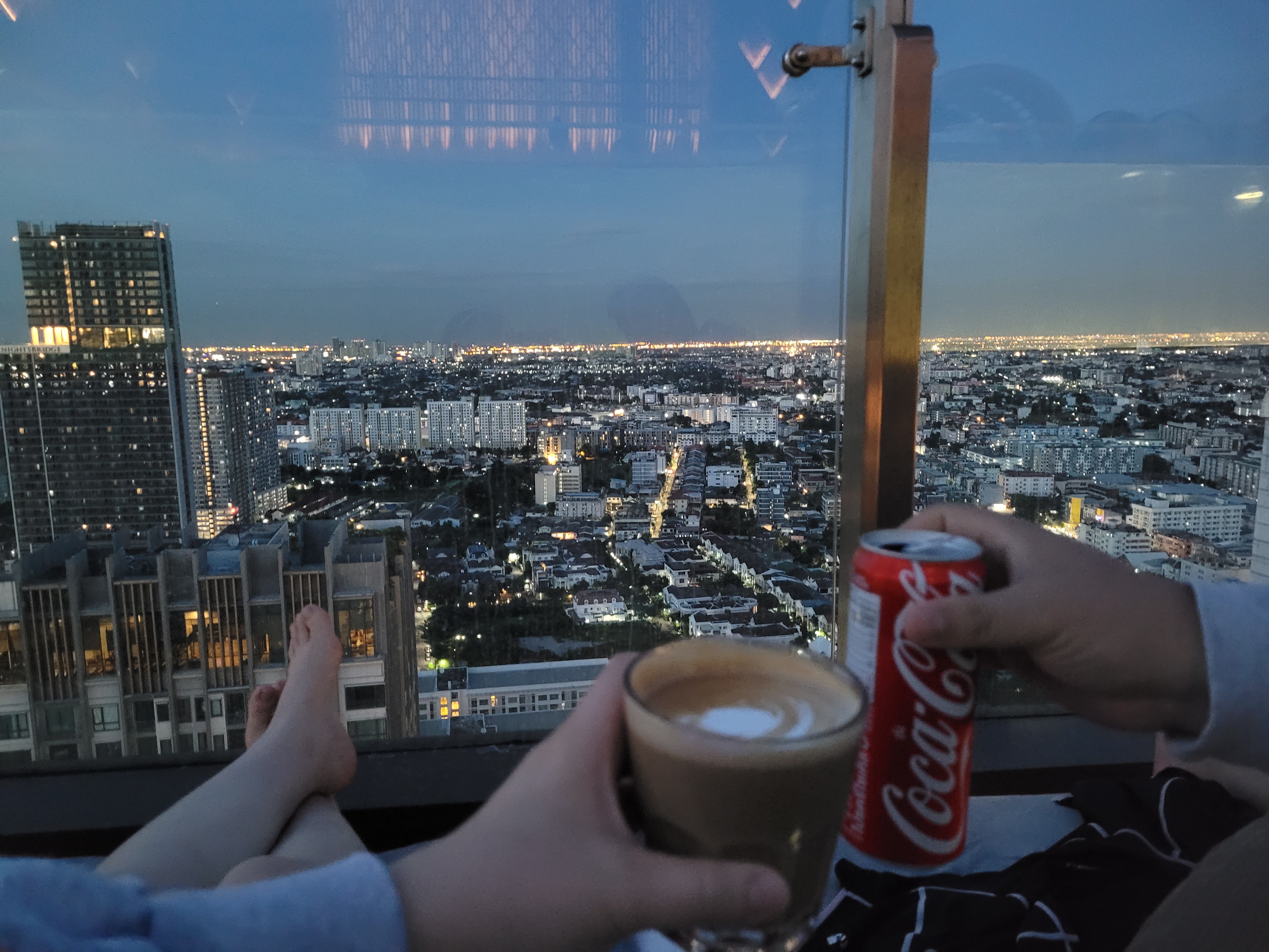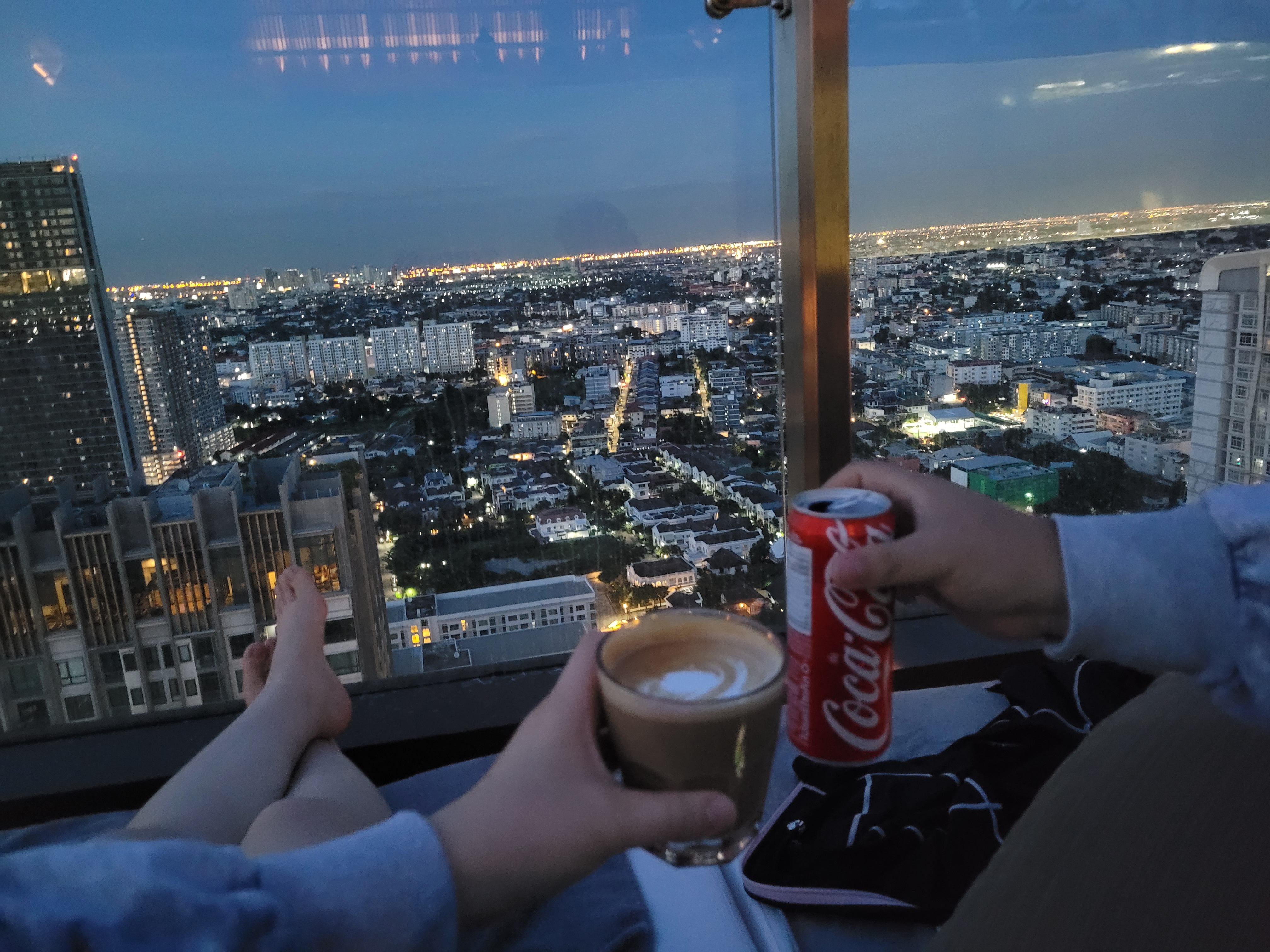 정확한 메뉴 가격은 시기마다 조금씩 다를 수 있지만, 제가 갔을 때(2025.7월기준) 는 콜라랑 카페라떼 모두 대략 200~300바트(한화 약 7천원 ~ 1만 4천원) 정도였던 것 같아요. 다른 루프탑 바에 비하면 훨씬 저렴한 편이죠?