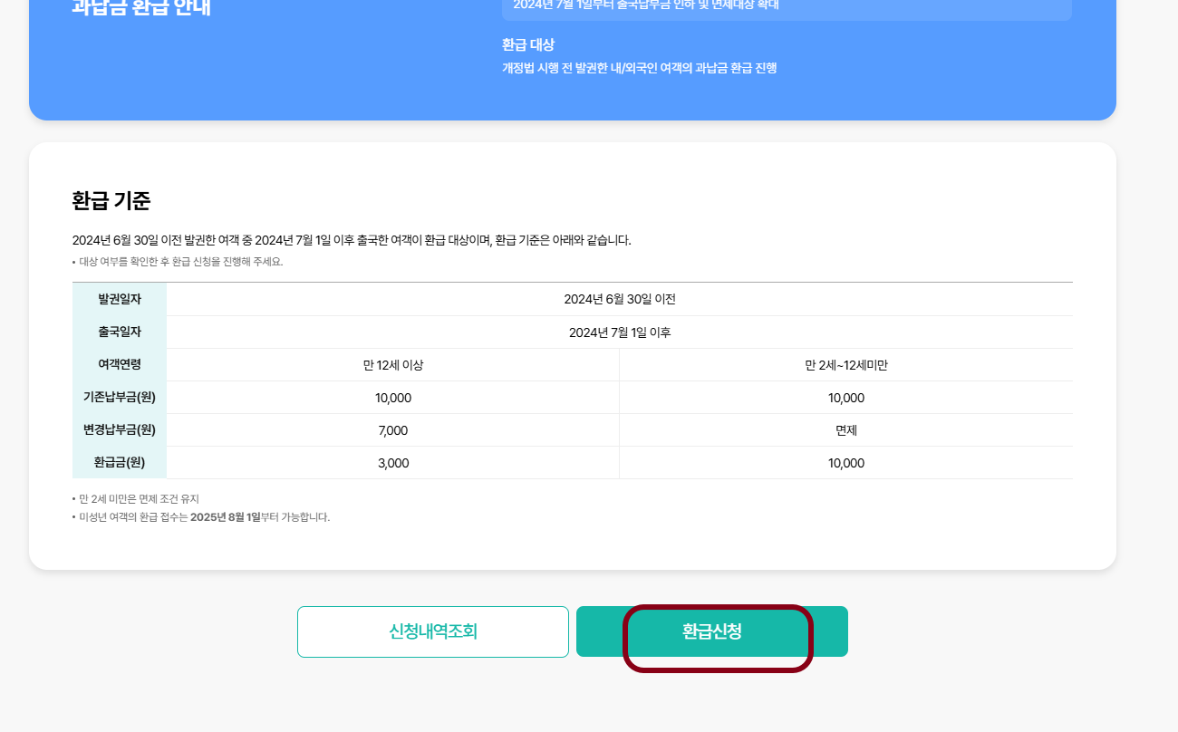 - 2024년 6월 30일 이전에 항공권을 발권했고, 2024년 7월 1일 이후에 출국 예정이었으나, 개정된 규정으로 인해 과납금이 발생한 내/외국인 여객!