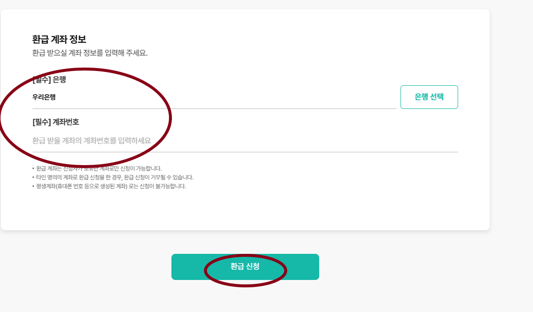 - 환급받을 계좌 정보 입력! (내 소중한 돈이 들어올 곳! 정확하게 입력해야겠죠?!)