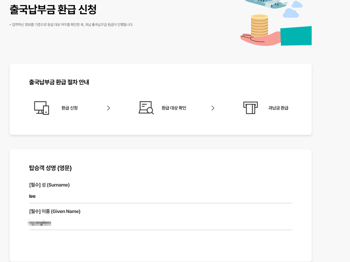 출국납부금 환급서비스 신청 사이트 출국납부금이 인하 환급 사이트