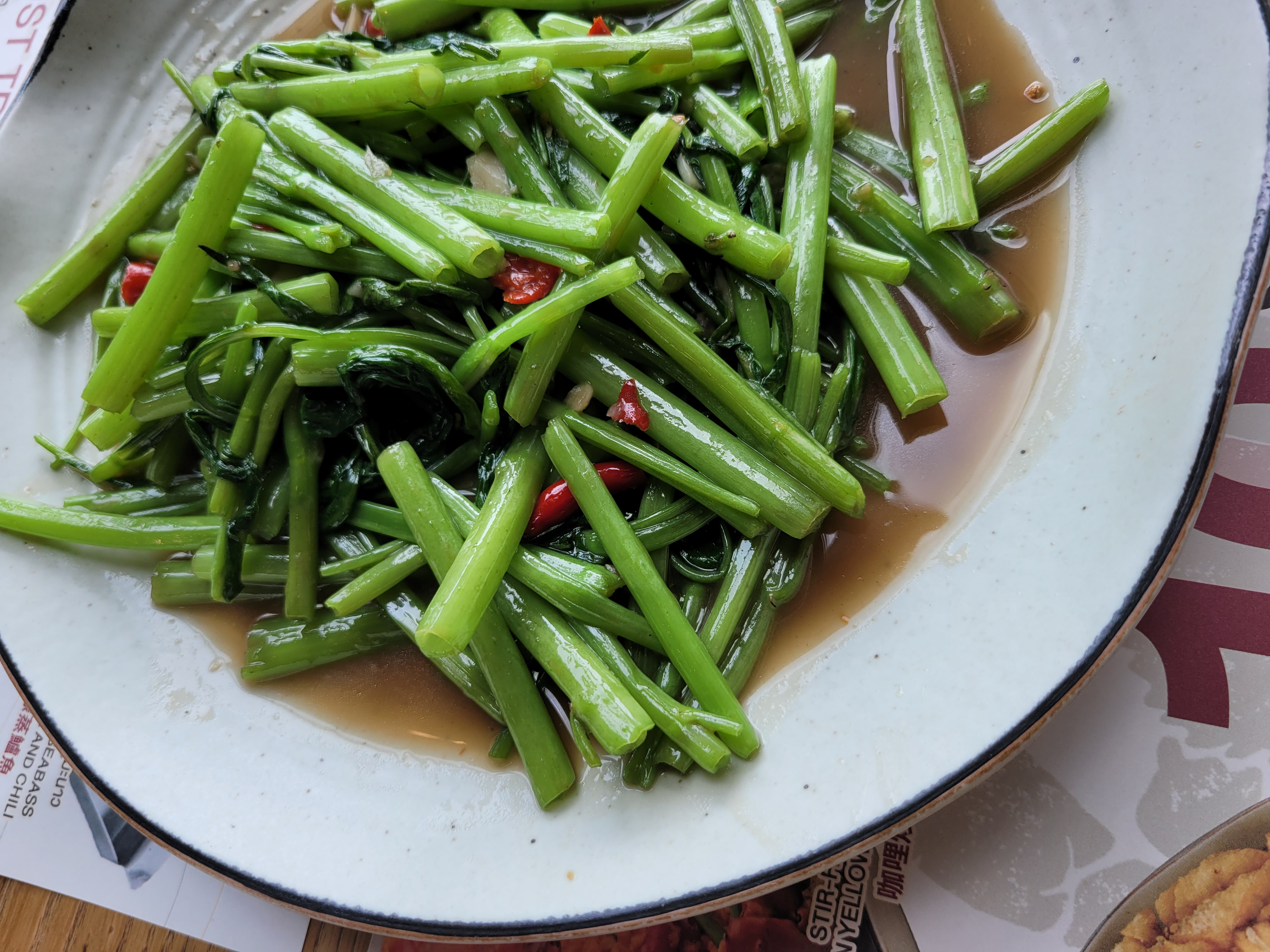 태국 가면 무조건 시키는 모닝글로리! ㅋㅋㅋㅋㅋ 아삭아삭한 식감에 짭짤한 마늘 간장 양념이 예술이에요. 다른 메뉴들이랑 같이 먹으면 간도 딱 맞고, 고기 요리랑 먹으면 느끼함도 싹 잡아줘서 환상의 궁합이랍니다. 이건 그냥 믿고 시키세요! 실패할 확률 0%!