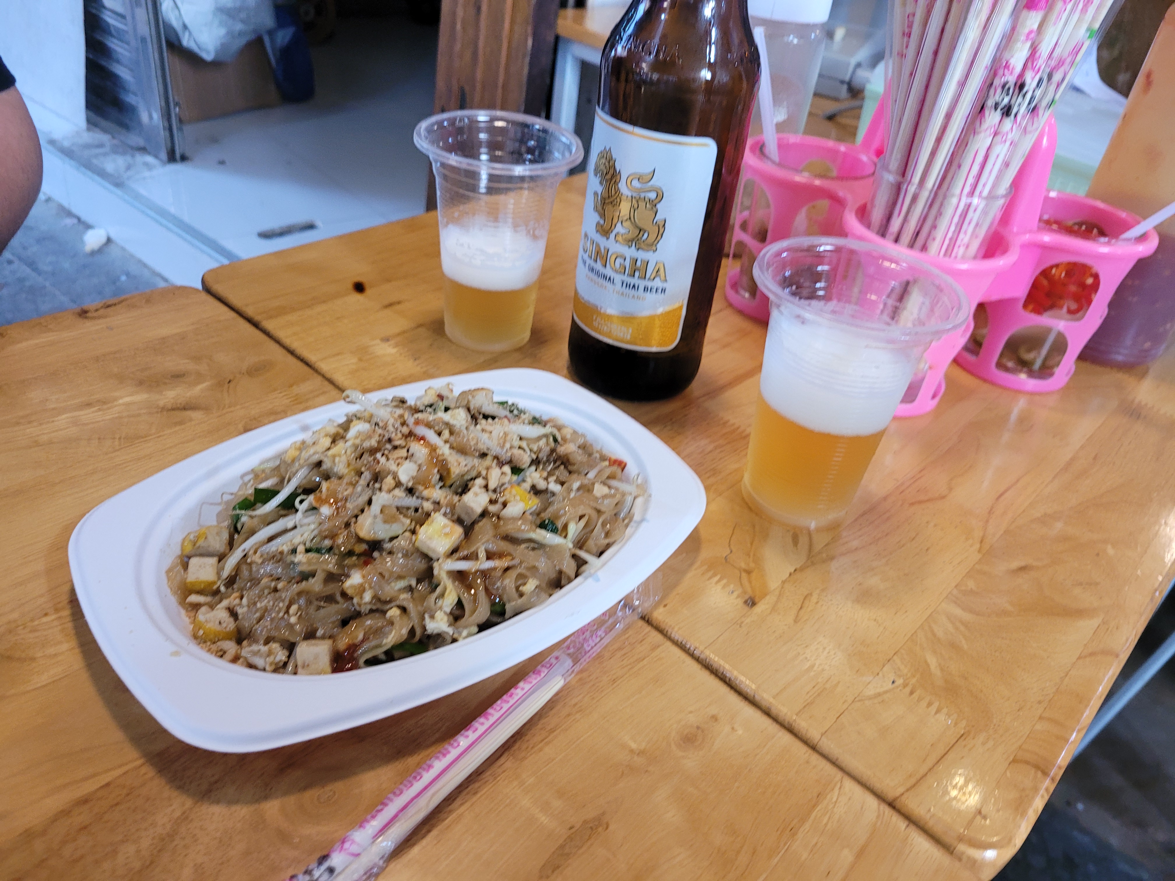 가장 중요한 맛! 솔직히 평범했어요. 팟타이 맛집이라기엔 기대 이하였어요. 팟타이를 주문하면 달걀과 함께 숙주, 새우 등을 볶아주시는데, 재료도 그냥저냥... 맛도 그냥저냥... 팟타이 소스가 팟타이의 핵심인데, 소스 맛이 깊지 않고 뭔가 애매했어요. 😞 가격은 한 접시에 50바트(한화 약 2,000원) 정도로 저렴하긴 하지만, 저는 그 돈 주고도 다시 먹고 싶진 않은 맛이었어요.