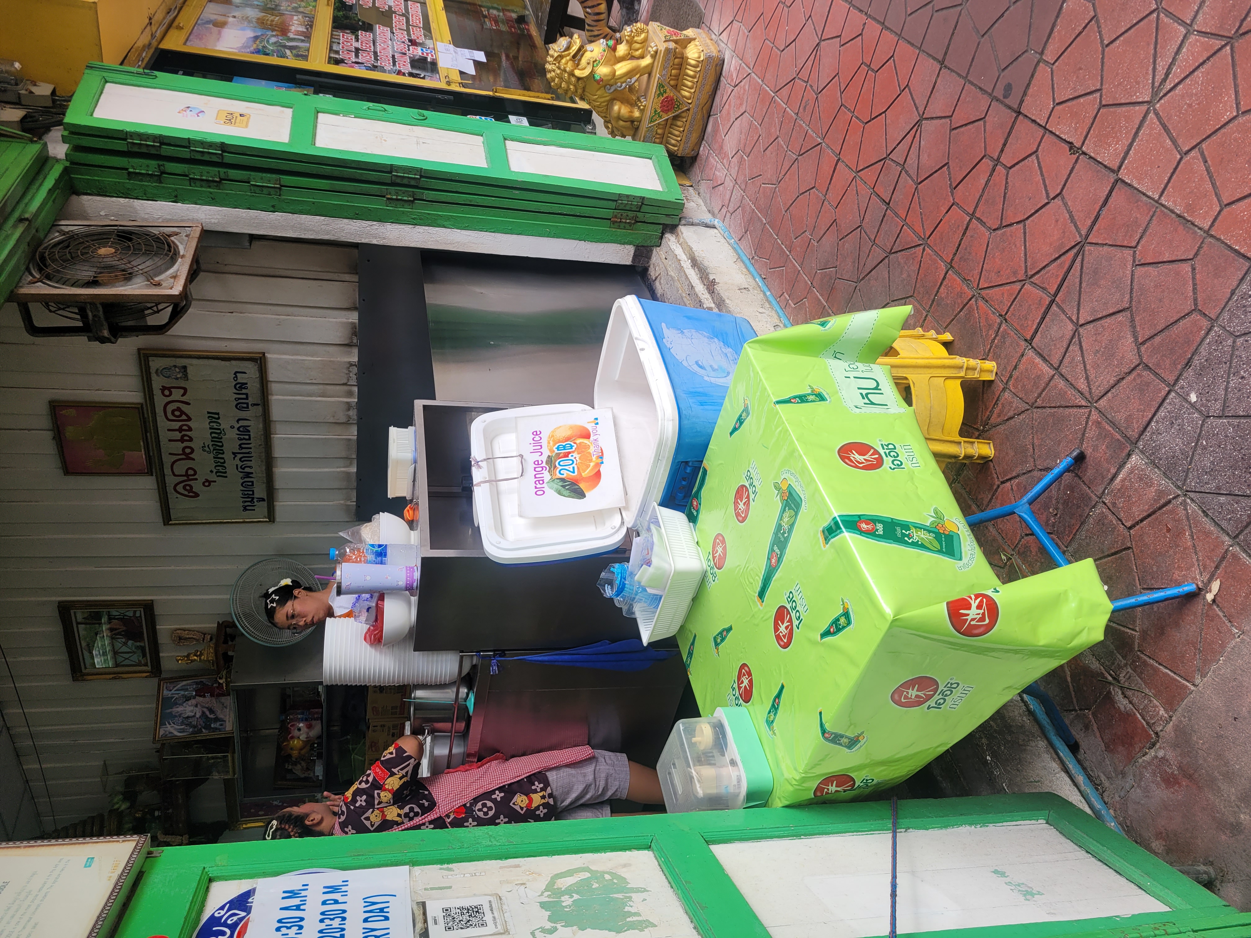 - 오렌지 주스는 사랑: 꾸어이짭의 든든하고 따뜻한 맛을 시원하게 잡아줄 생 오렌지 주스를 꼭 드셔보세요. 알갱이가 톡톡 터지는 신선함이 진짜 최고예요! ㅋㅋㅋ 더운 날씨에 끈적국수 한 그릇 뚝딱하고 시원한 오렌지 주스 한 모금 마시면 천국이 따로 없답니다.