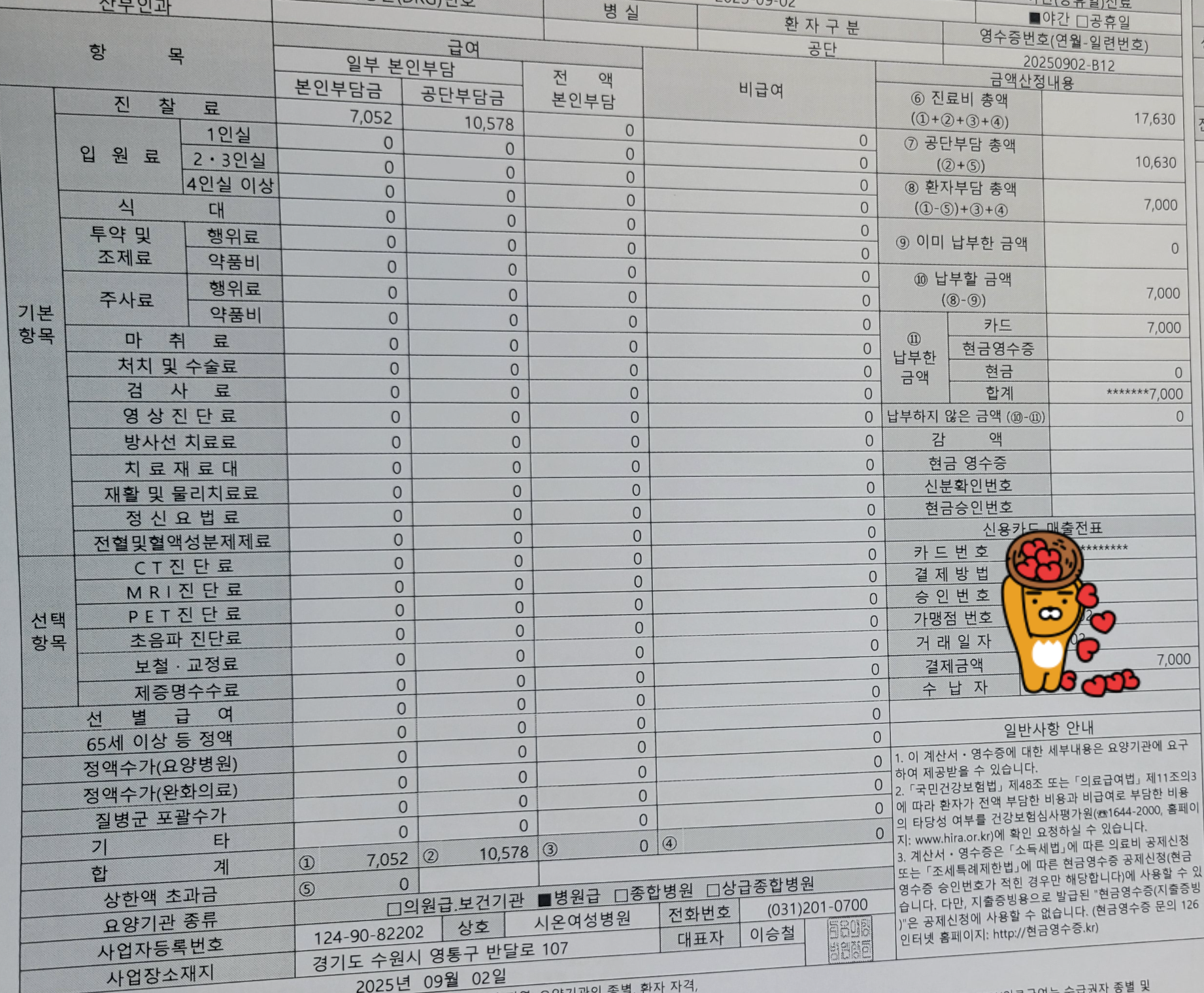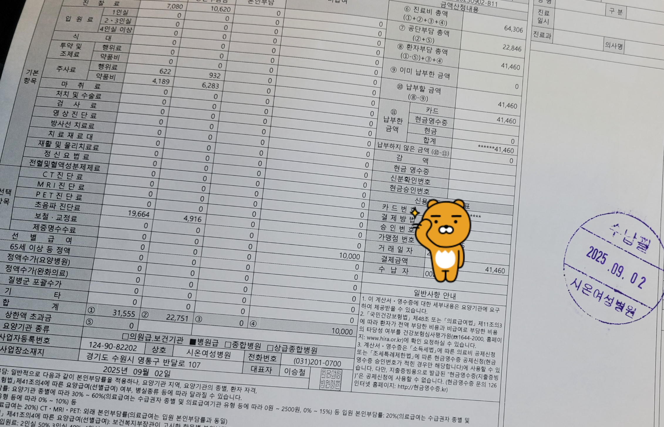 제 진료비는 진단서 1만원 + 초음파 및 진료비 31,555원해서