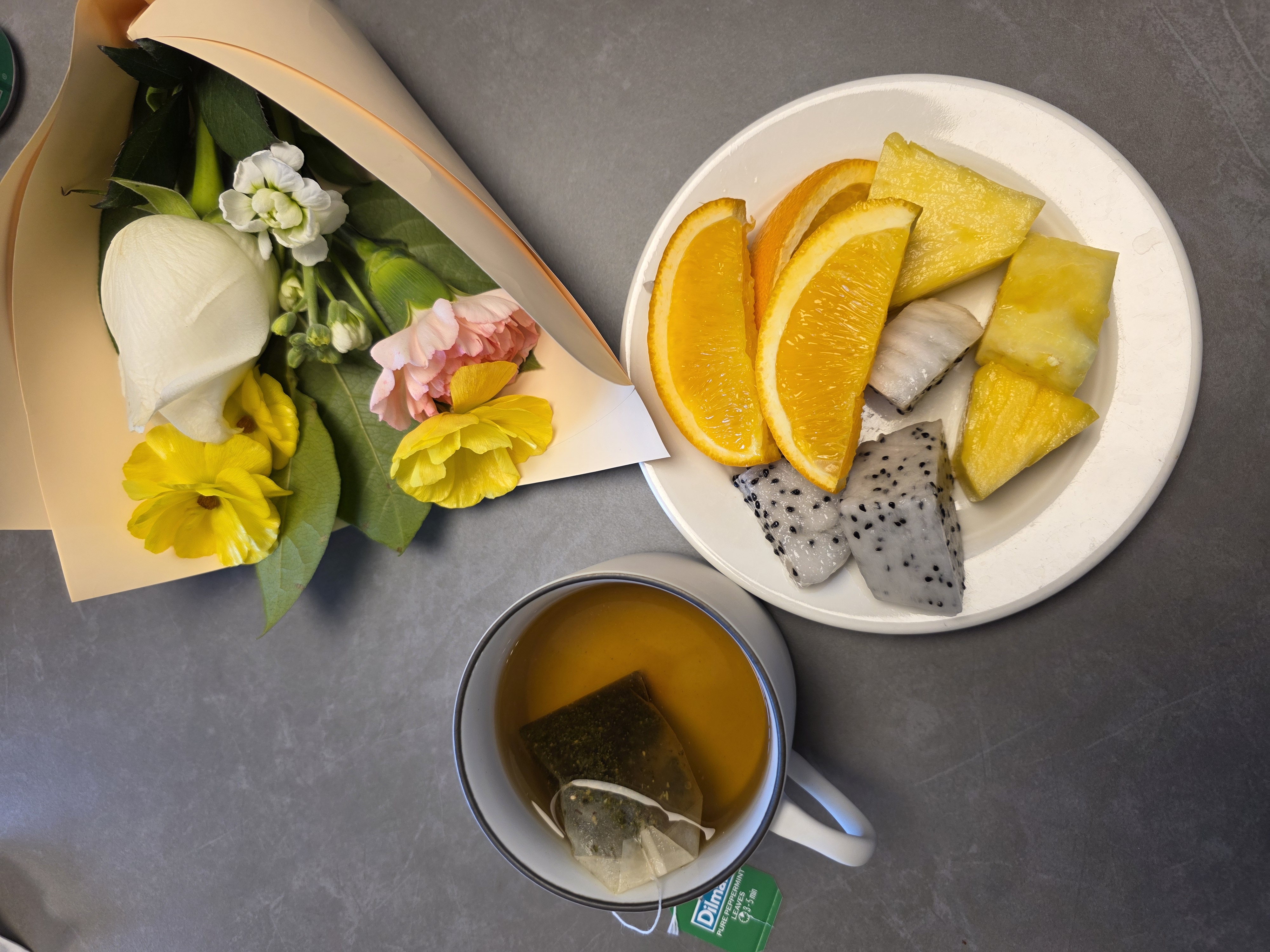 꽃은 체크인하고서 선물받은 꽃이에요!