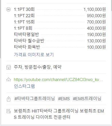 저는 우선 PT 끊었지면 평일에는 타바타도 관심이 생겨서 타바타도 결제했는데요~