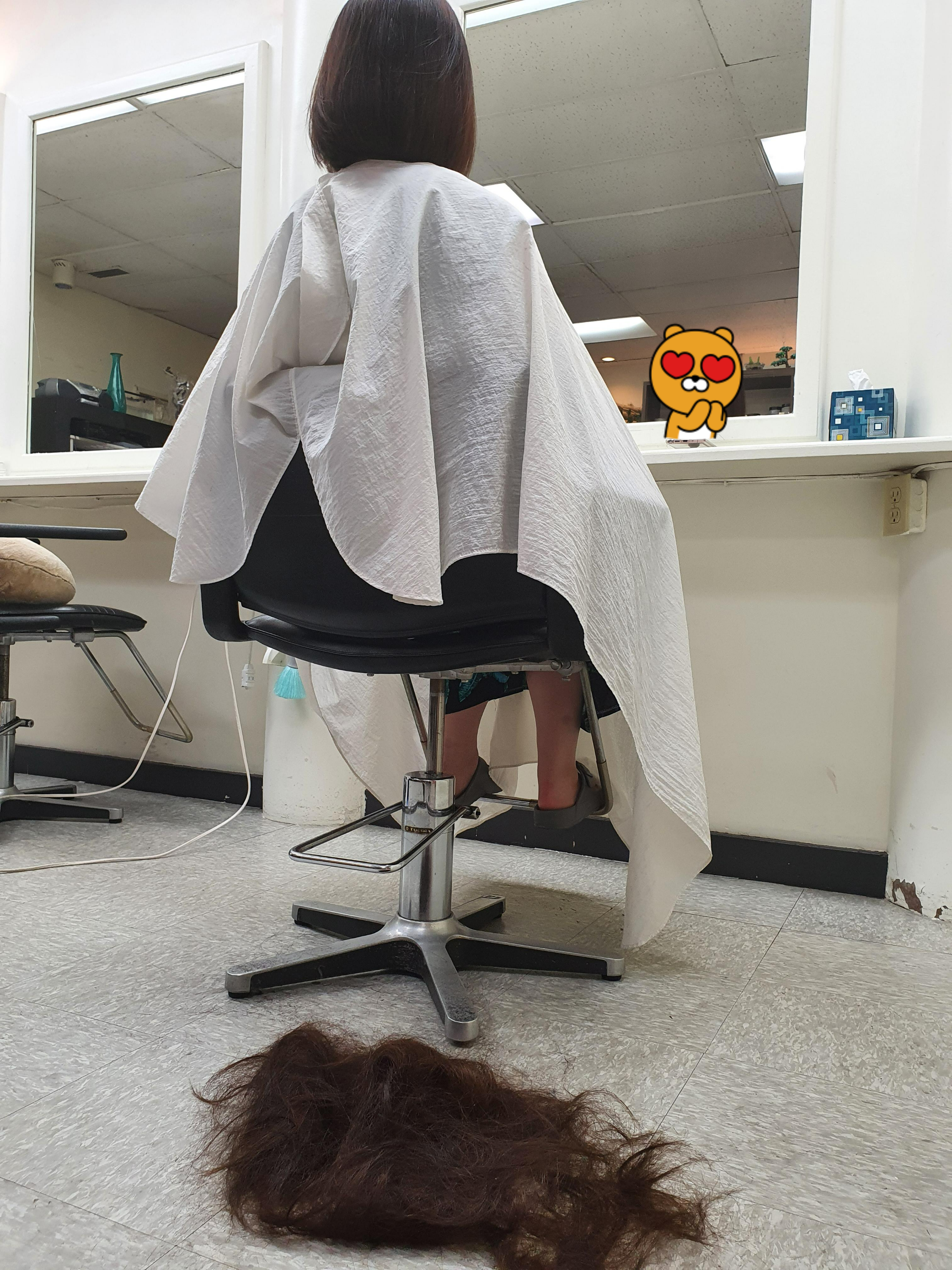 시원시원하게 층없는 1자머리 단발로 싹둑 잘랐습니다 :)