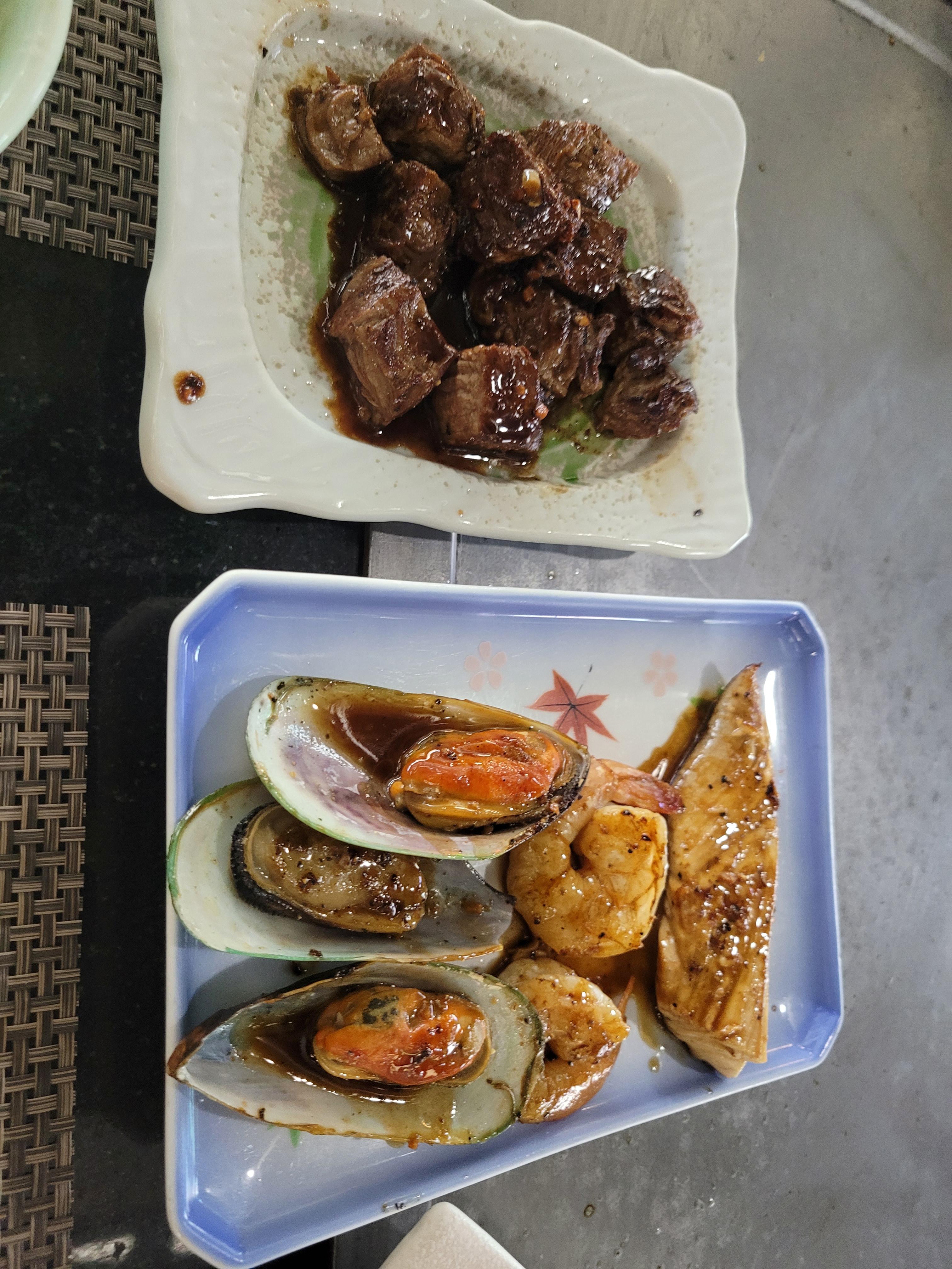 철판 주문은 해산물 하나와 소고기 하나로 주문했어요