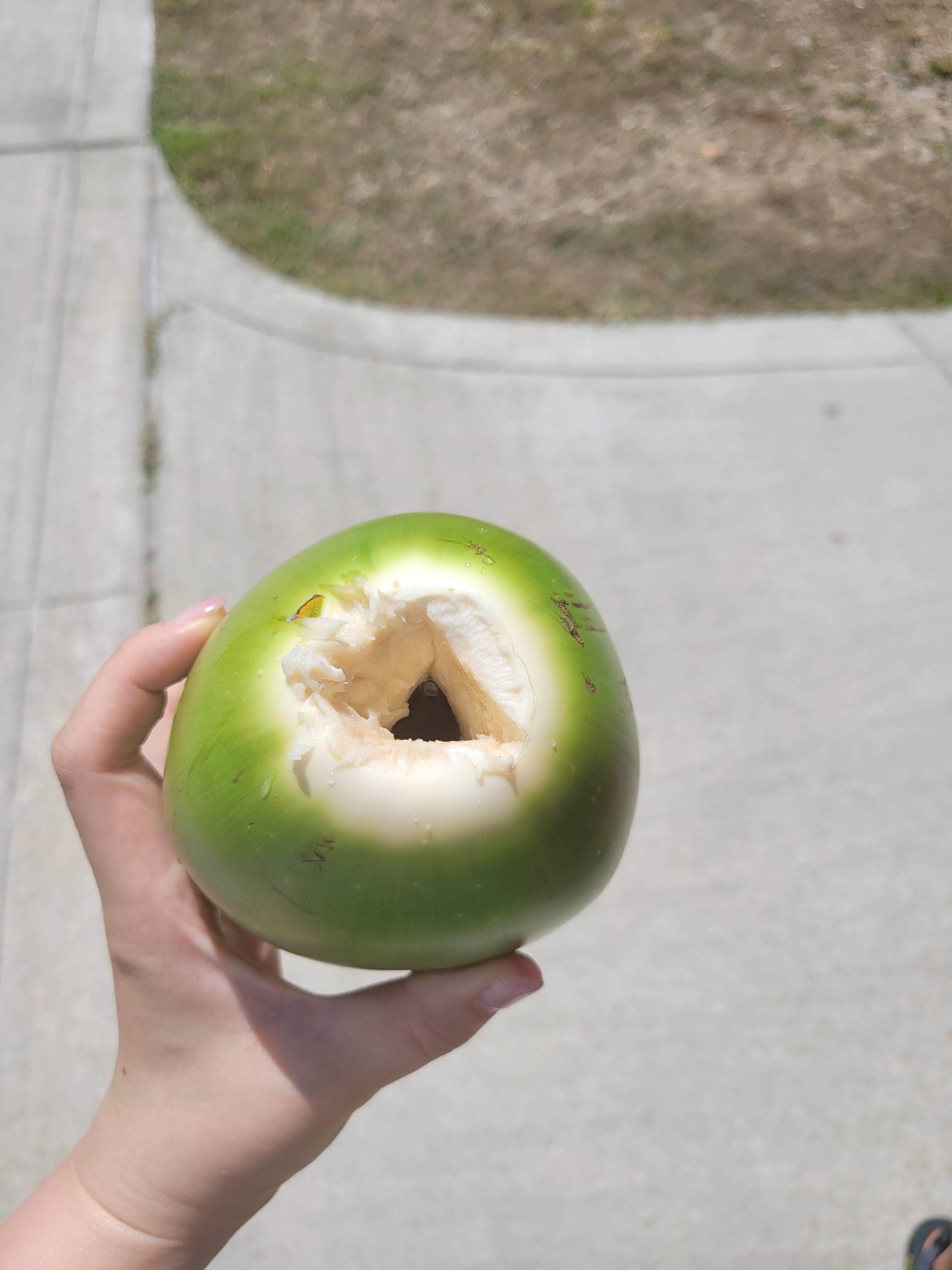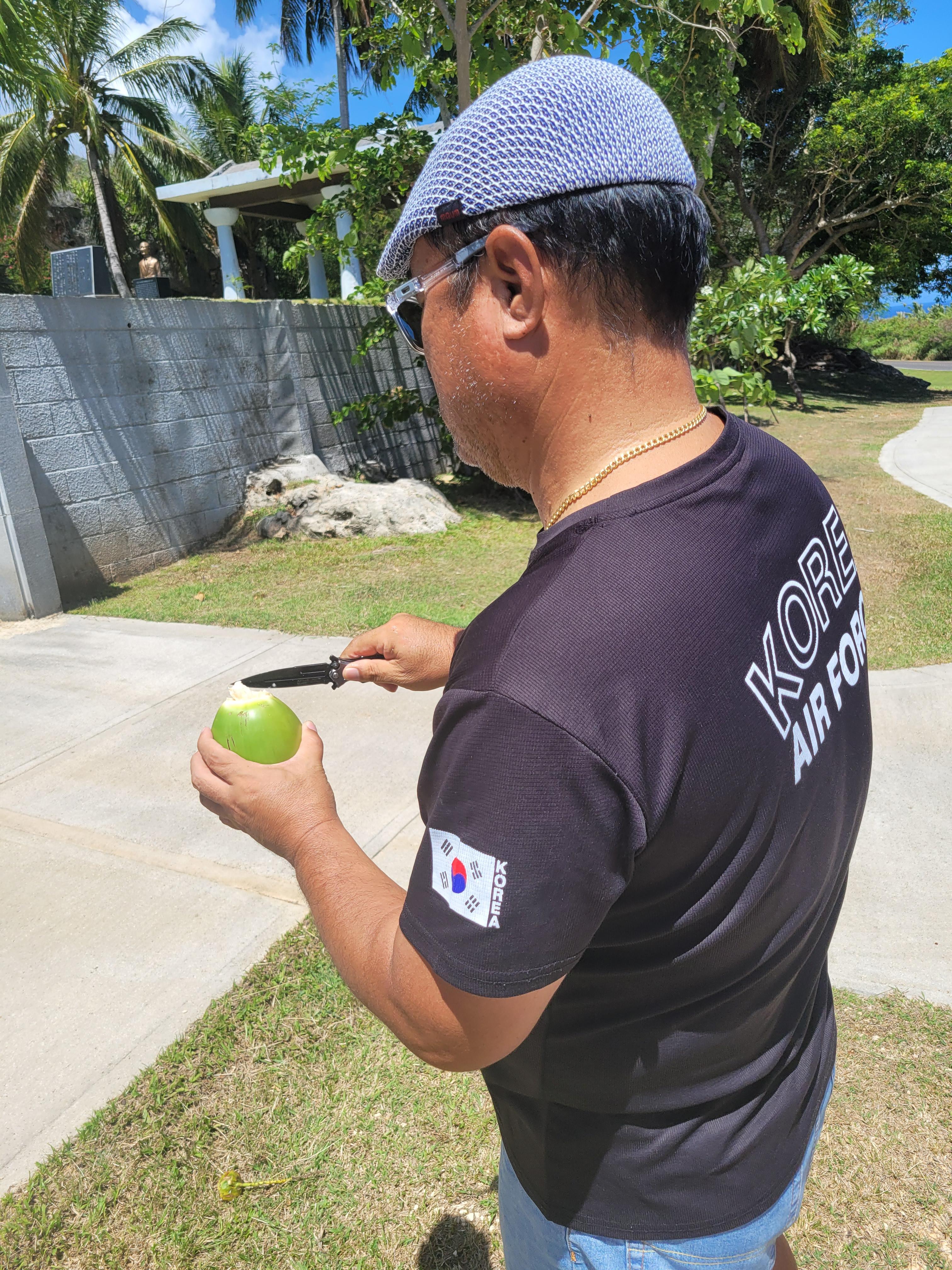 티니안섬에서 못 먹은 코코넛 열매를 북부투어에서 먹었어요
